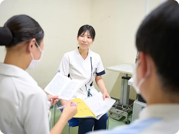 自己の看護感の確立に向けて学ぶ患者さんを受け持ち、1人で看護できる力を習得できるよう、より高度かつ実践的な看護の方法を指導。様々な看護事例から学ぶ研修で倫理的に看護を考える力を養います。